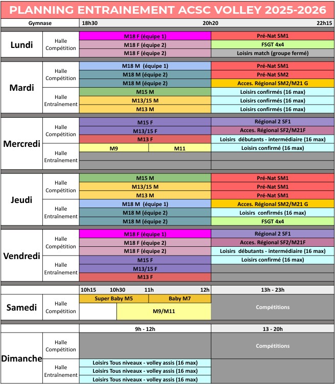 Voici les créneaux de la saison sportive 2025/2026